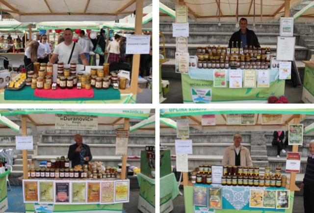 Med i ostali pčelinji proizvodi i proizvodi na bazi meda. Iako je i ova godina za pčelare, bila jedna od lošijih godina po prinosima, oni pčelari, koji pčelare na savremen način i koji su bili uporni u traženju pčelinjih paša, nisu nezadovoljni. Konjički pčelari su prisutni na sajmovima i festivalima širom Bosne i Hercegovine, kao i na ovom Festivalu gdje su bili zastupljeni u značajnom broju. Na prepunim stolovima nudili su više vrsta meda: bagremov, med od vrijesaka, livadski, kadulja, kestenov i šumski med, te proizvodi od meda ili na bazi meda: matična mliječ, propolis, vosak i polen te razni preparati na bazi meda i raznih ljekovitih biljnih vrsta.