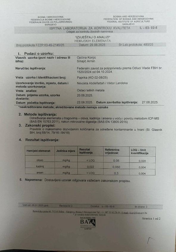 - Svi ispitani uzorci (slučajnim odabirom) u potpunosti odgovaraju strogim zakonskim propisima i kriterijima o sigurnosti hrane. U prilogu neke od analiza.