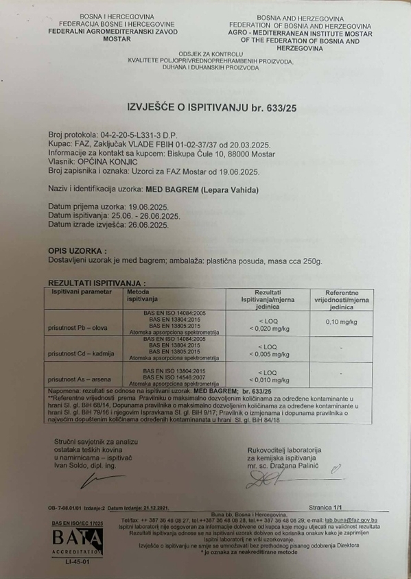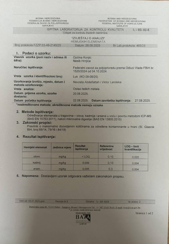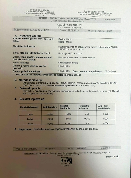Analize su proveli renomirani instituti Federalni agromediteranski zavod Mostar i Federalni zavod za poljoprivredu Sarajevo na osnovu zaključka Vlade FBiH, a u saradnji s Grad Konjic.